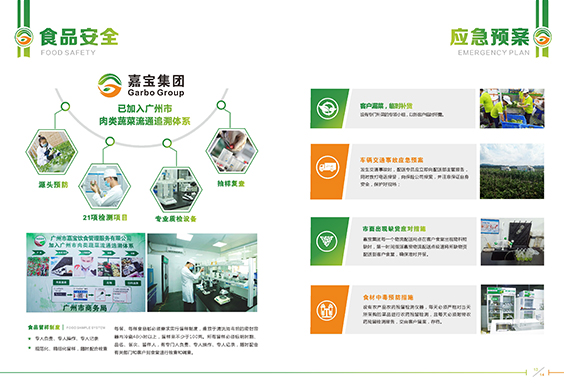 嘉宝食品集团有限公司,注册资金 5000 万,始创于 2008 年,旗下有广东嘉宝食品供应链有限公司、惠州市嘉宝供应链管理有限公司、浙江丰胜农产品有限公司,嘉宝花都分公司、天河分公司。历经十余年风雨洗礼,不断发展创新,在餐饮管理、农副产品配送领域积累了宝贵的经验,拥有完善的生产、加工、运输配送服务体系,配送专用占地 10000 多平方米,各设有加工车间、果蔬类初加工区、肉类初加工区、库房、冷库、运输车及各种规格的周转箱等完善的生产、加工、储存、运输设备,配备有食品安全检测区,能够对蔬菜、瓜果等食品进行安全检测,强有力的保证了蔬菜的安全、新鲜、营养。